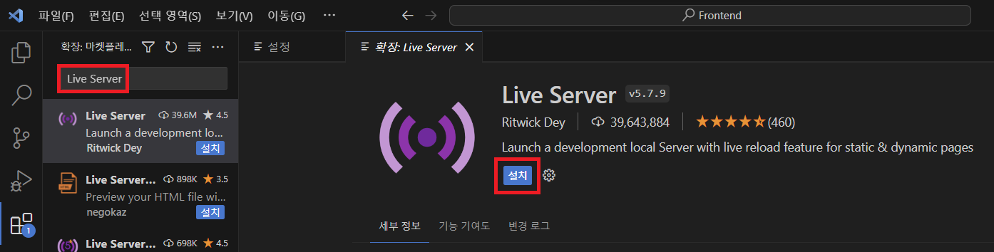 ▶ Live Server 설치