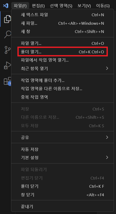 [파일(F)]에 [폴더 열기...]를 클릭한다.